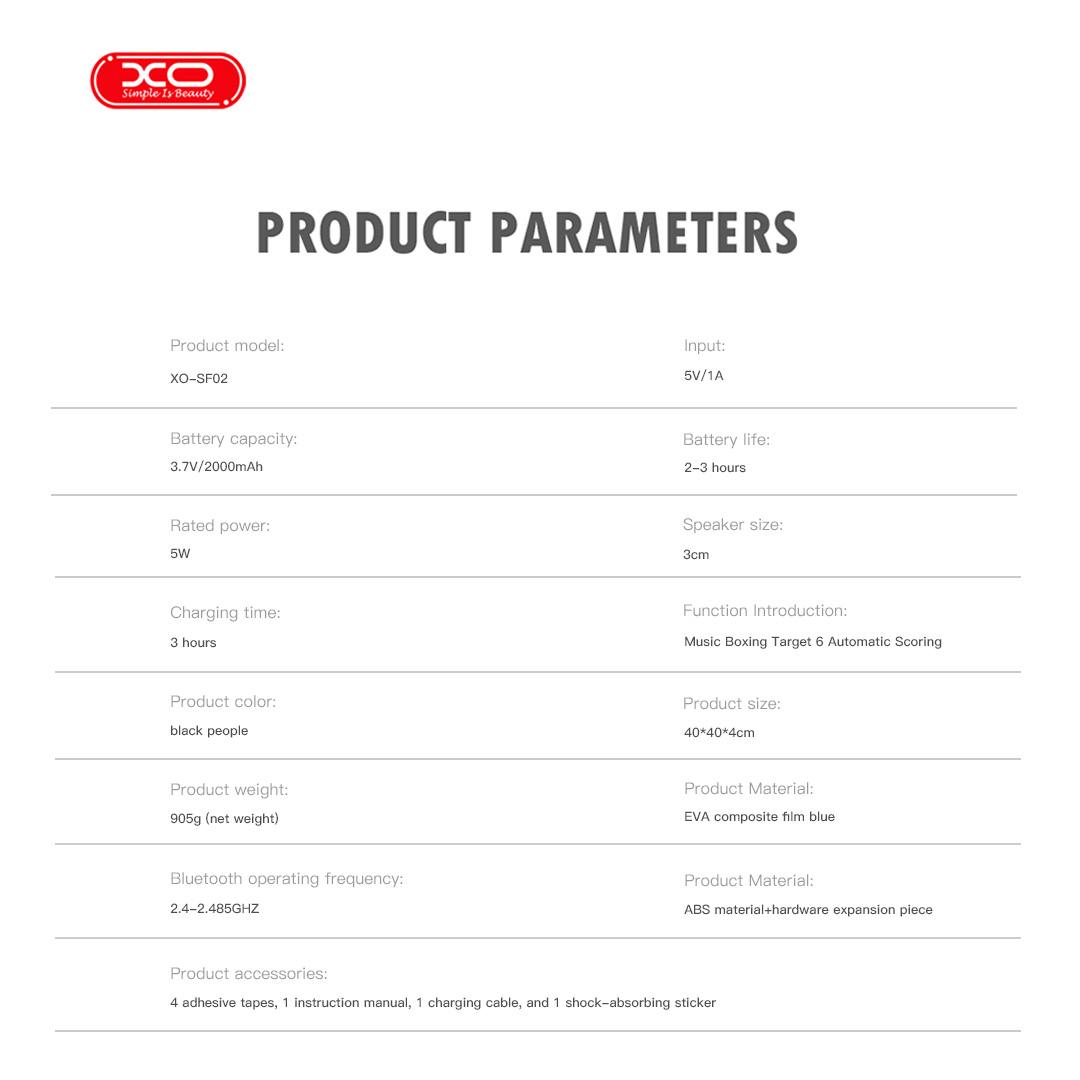 XO SF02 là một boxing game thông minh, kết hợp tập luyện với những bản nhạc yêu thích. Với khả năng kết nối Bluetooth, bạn có thể dễ dàng đồng bộ với điện thoại để phát nhạc tùy ý. Đặc biệt, sản phẩm được trang bị đèn LED RGB sống động, tự động sáng lên ở vị trí bạn cần đấm, tạo thành một trò chơi rèn luyện phản xạ và tốc độ cực kỳ cuốn hút.