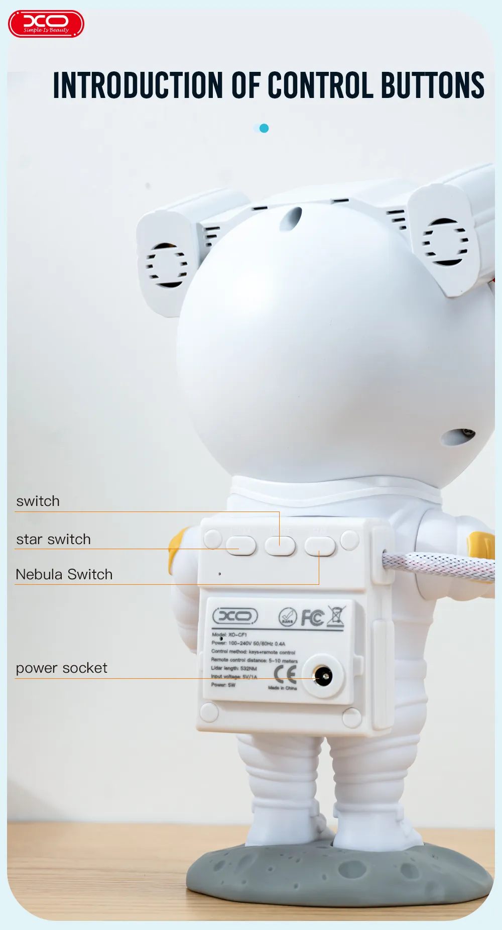 Bạn có bao giờ mơ ước được khám phá vũ trụ bao la, hay đơn giản chỉ là ngắm nhìn một bầu trời sao tuyệt đẹp ngay trong chính căn phòng của mình? Hãy biến ước mơ đó thành hiện thực với Đèn chiếu bầu trời sao hình phi hành gia XO CF1 – món quà độc đáo dành cho những tâm hồn yêu thích khám phá và sự lãng mạn!