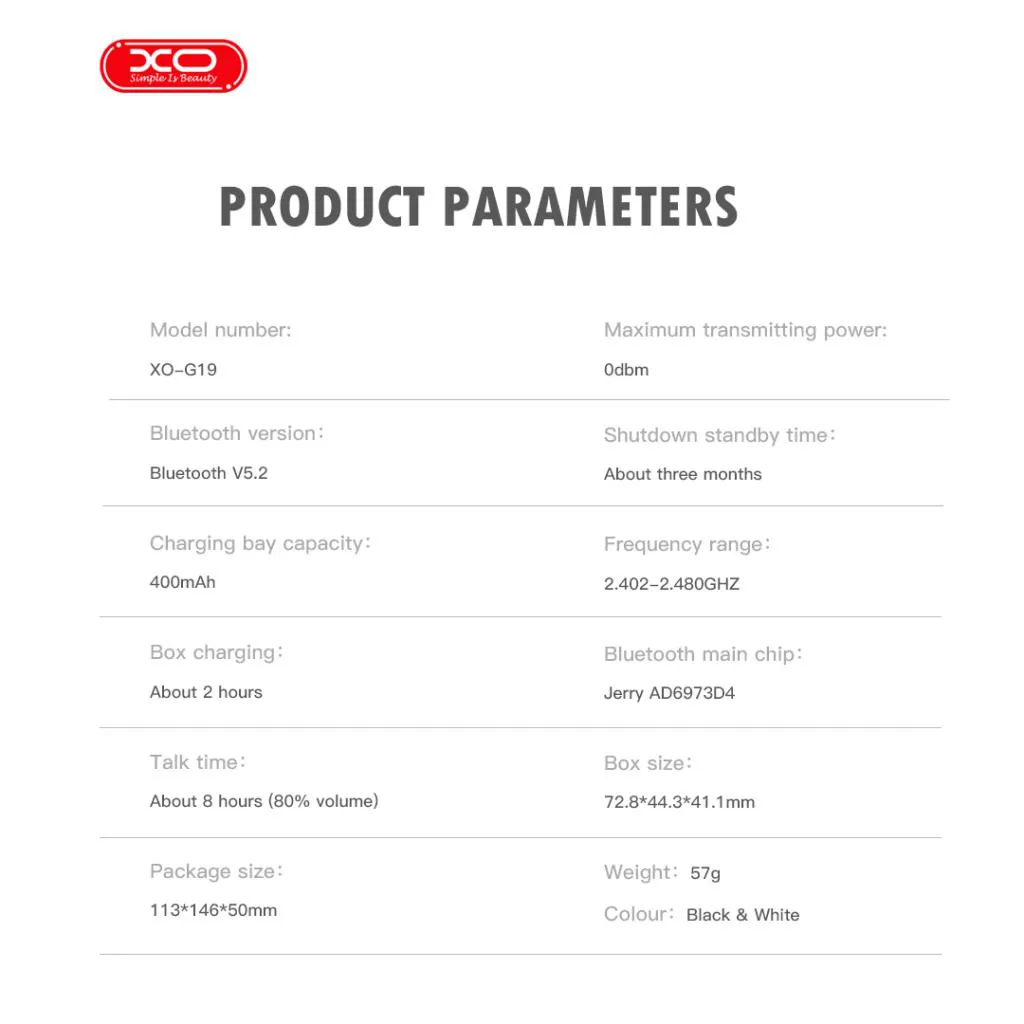 Tai nghe Airpod XO G19 TWS Đầy Đủ Chức Năng - Trải Nghiệm Âm Thanh Tối Ưu Với Công Nghệ Hiện Đại