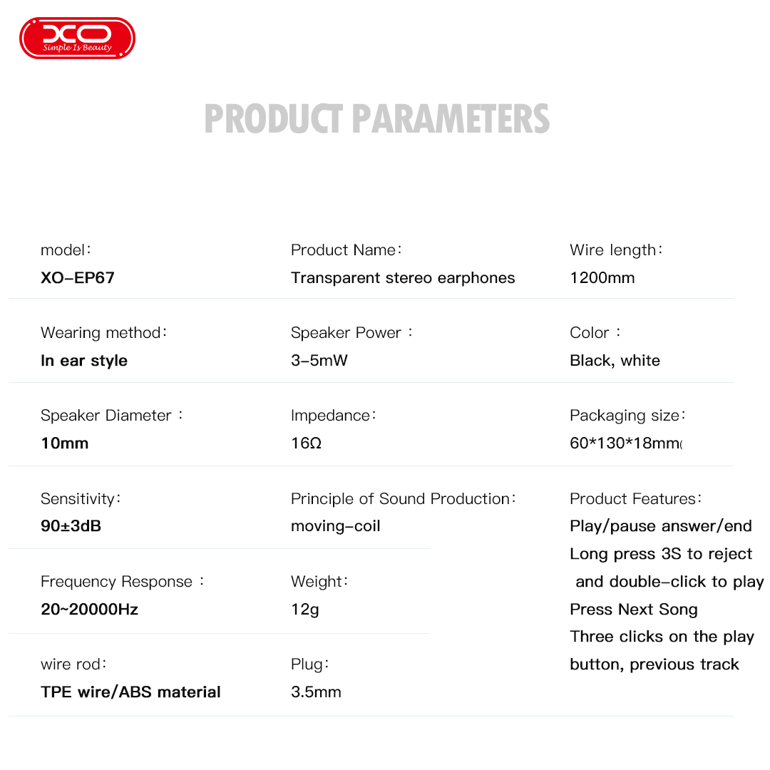 - Thiết Kế Dây Dài Linh Hoạt: Với chiều dài dây 1.2m ±0,03m, tai nghe XO EP67 mang lại sự linh hoạt trong quá trình sử dụng, cho phép bạn thoải mái di chuyển mà không lo bị hạn chế.