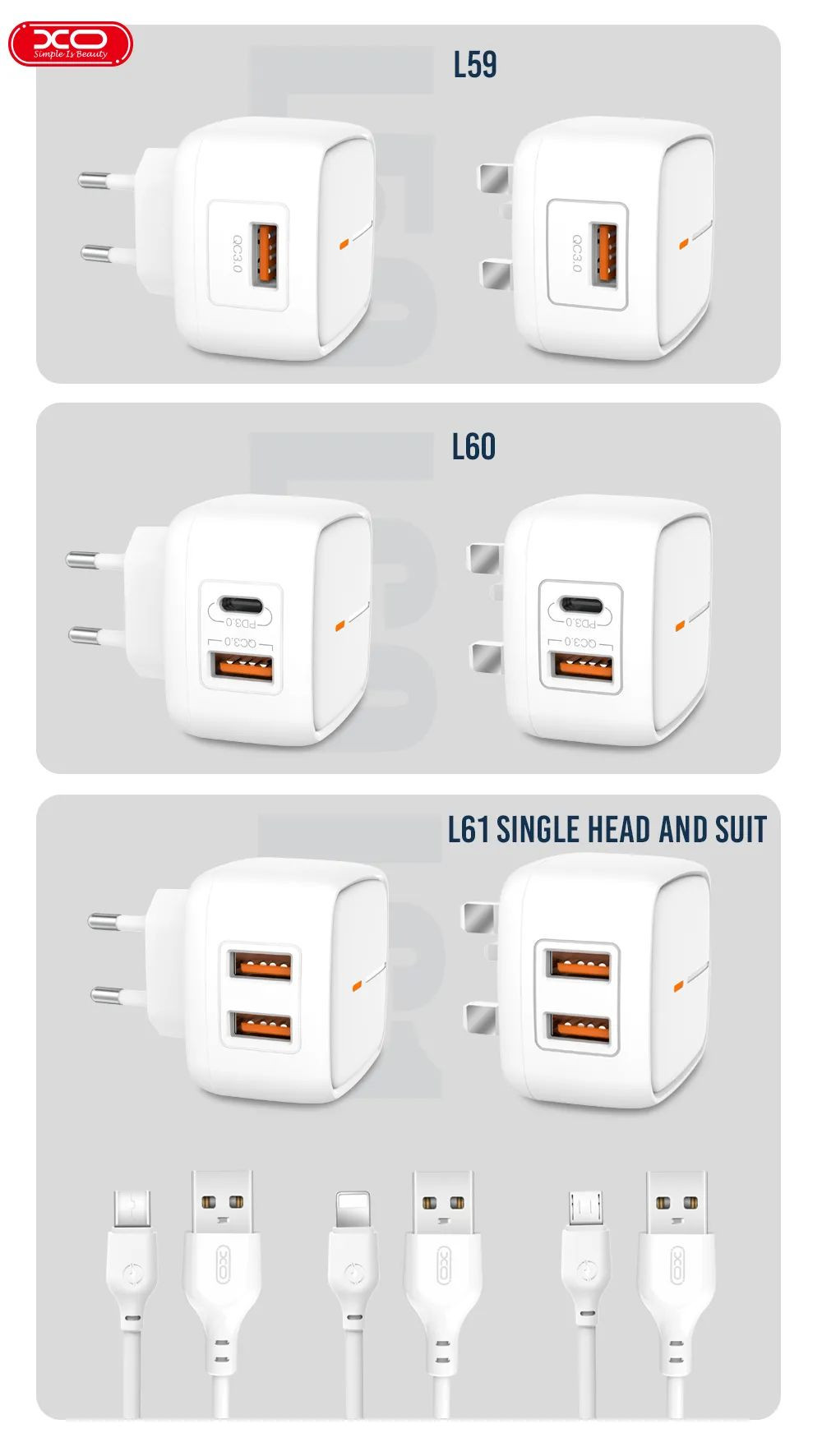 Bộ Sạc XO L59 – sản phẩm sạc nhanh với công suất lên đến 18W, đáp ứng mọi nhu cầu sạc của bạn một cách hiệu quả và an toàn. Thiết kế nhỏ gọn và chất liệu bền bỉ, XO L59 là lựa chọn hoàn hảo cho những ai cần sự tiện lợi và tốc độ trong từng lần sạc.