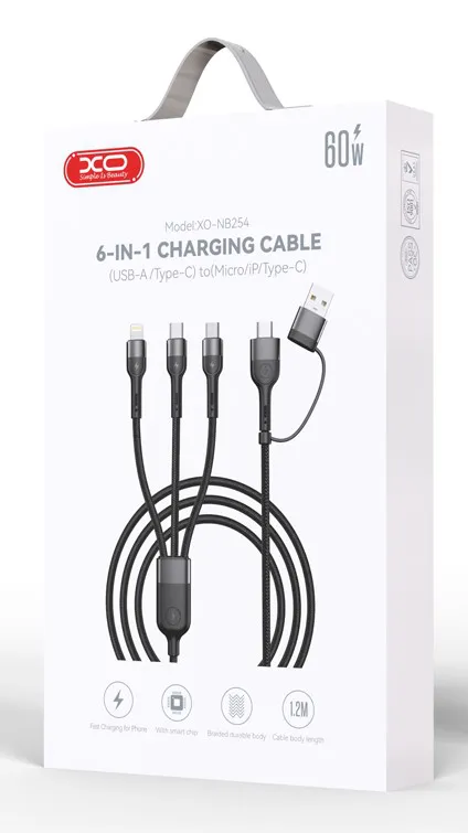 - Dây Sạc Điện Thoại XO NB254 được thiết kế để đáp ứng mọi nhu cầu sạc cho các thiết bị phổ biến như iPhone, Samsung và nhiều thương hiệu khác. Với cáp sạc điện thoại đa cổng, bạn có thể dễ dàng sạc nhiều thiết bị cùng lúc mà không cần thay đổi dây cáp.