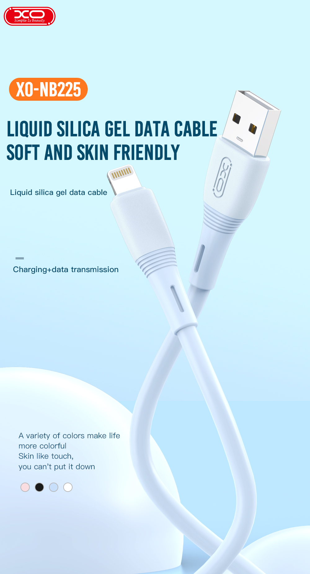 - Cáp sạc điện thoại XO NB225 hỗ trợ dòng sạc 2.4A, đáp ứng nhu cầu sạc nhanh cho cả cáp sạc cho iPhone và cáp sạc cho Samsung. Sản phẩm cũng hỗ trợ truyền dữ liệu nhanh chóng, giúp tiết kiệm thời gian đồng bộ hóa.
