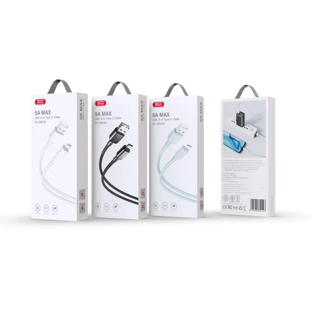 - Dây Sạc Điện Thoại XO NB249 được thiết kế với chiều dài 1m và cấu tạo từ vật liệu PVC cao cấp, mang đến sự bền bỉ và hiệu suất sạc nhanh. Với khả năng truyền tải dòng điện lên đến 5A, cáp giúp rút ngắn thời gian sạc cho thiết bị của bạn.