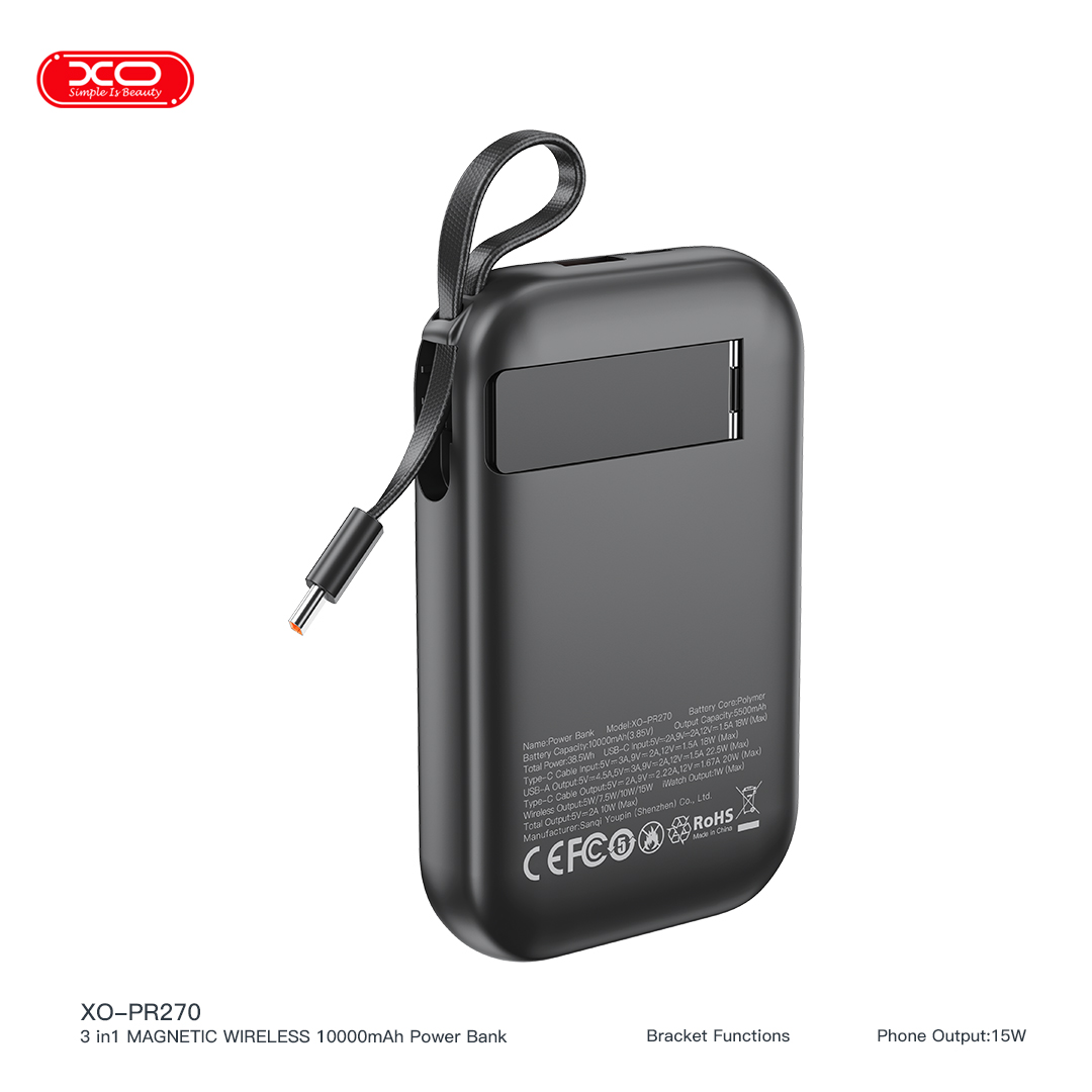 Sạc dự phòng không dây XO PR270 - 10.000mAh, sạc nhanh đa năng 3 trong 1