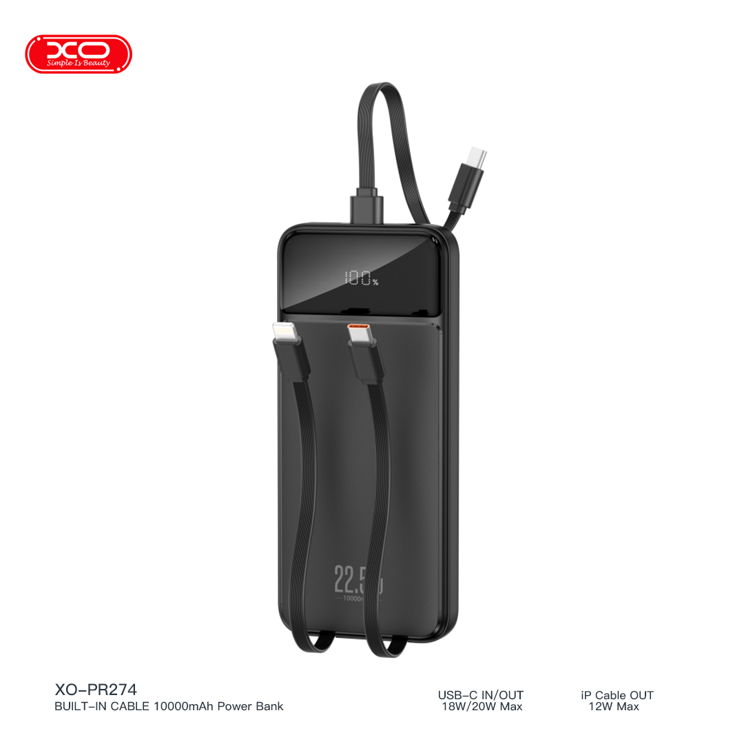 Sở hữu ngay sạc dự phòng có dây XO PR274 - Tích hợp cáp sạc 22.5W, màn hình LED