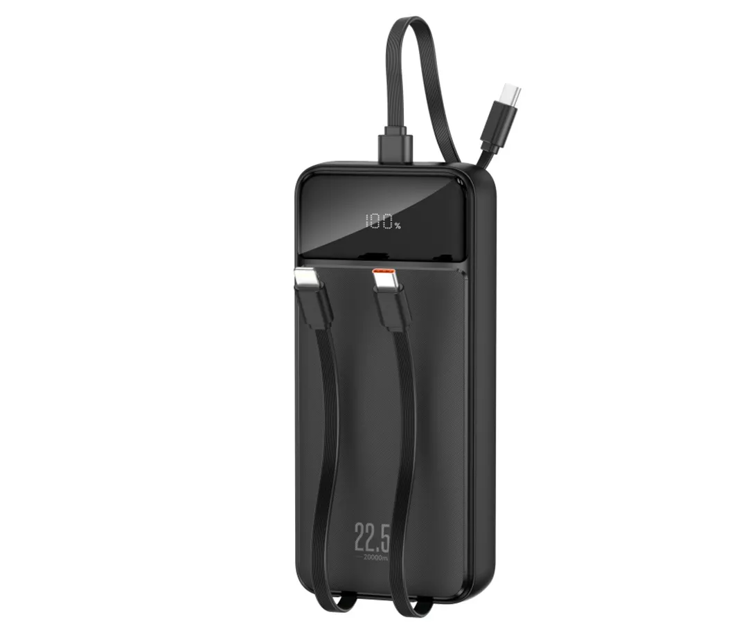 Sản phẩm này là một "nhà máy điện" di động thực thụ với dung lượng pin lên đến 20.000mAh, đảm bảo cung cấp đủ năng lượng cho mọi thiết bị của bạn trong nhiều ngày. Với hai cáp sạc tích hợp sẵn, một cáp Type-C hỗ trợ sạc nhanh lên đến 22.5W và một cáp Lightning cho thiết bị iOS, bạn không cần phải mang theo bất kỳ dây cáp nào nữa. Điều này giúp bạn giảm thiểu sự lỉnh kỉnh và luôn sẵn sàng sạc pin mọi lúc, mọi nơi.
