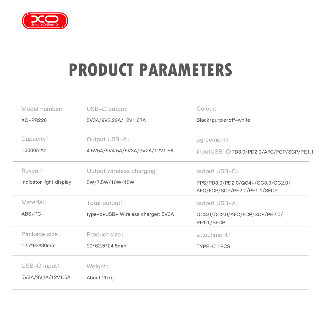 ↘️Sạc Không Dây Hiện Đại Và Tiện Lợi: XO PR226 không chỉ mạnh mẽ với sạc nhanh lên tới 22.5W mà còn tích hợp sạc không dây với công suất tối đa 15W, giúp bạn dễ dàng sạc pin mà không cần đến dây cáp. Với khả năng hỗ trợ nhiều giao thức sạc nhanh, PR226 là sự lựa chọn hoàn hảo cho cả những người dùng thiết bị Android và iOS.