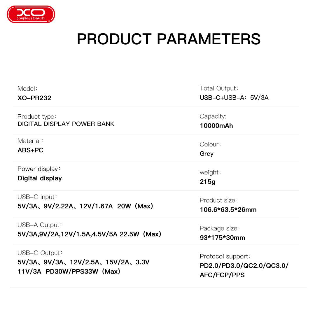 Sạc Dự Phòng XO PR232 với dung lượng 10,000mAh mang đến khả năng sạc nhanh và mạnh mẽ, giúp bạn luôn sẵn sàng kết nối.