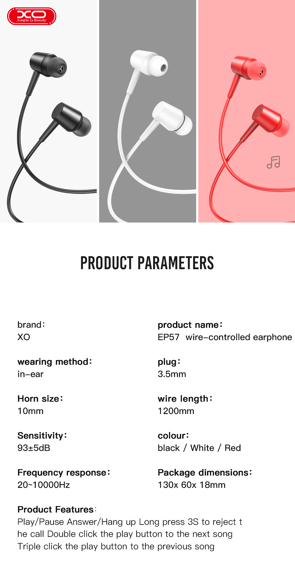 Bạn đã sẵn sàng để trải nghiệm chất lượng âm thanh tốt mà XO EP57 mang lại chưa? Đặt hàng ngay hôm nay để sở hữu chiếc tai nghe jack 3.5 này và tận hưởng thế giới âm nhạc của riêng bạn!