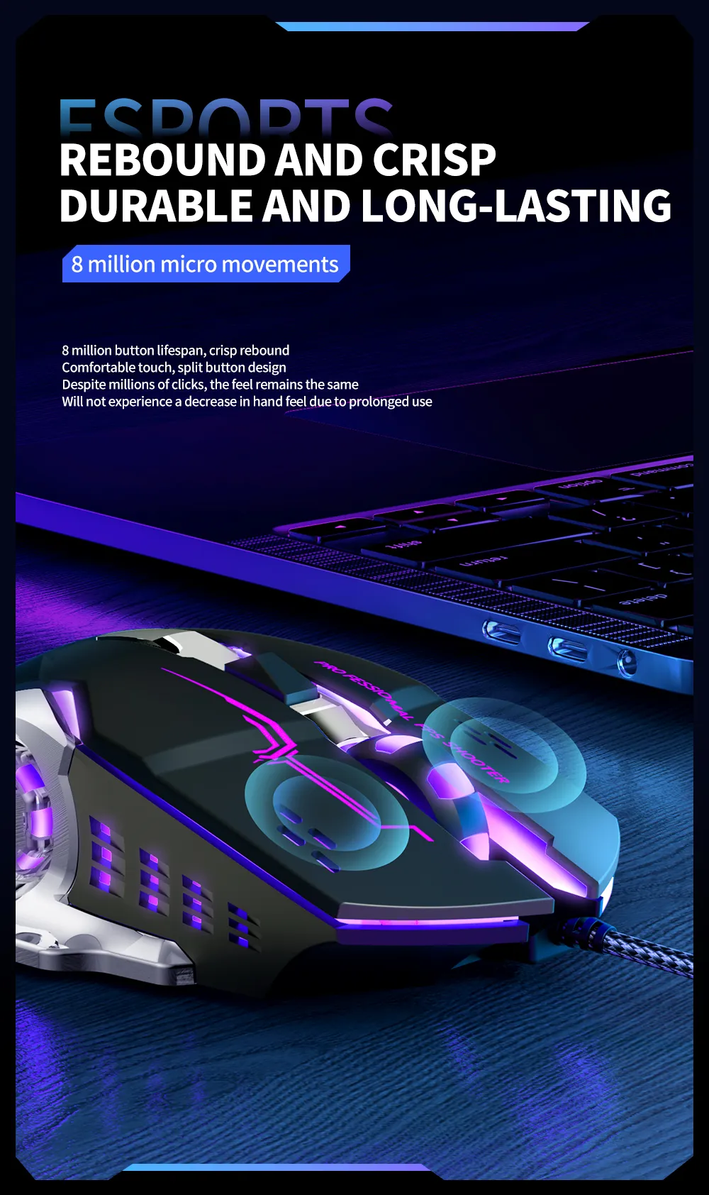 Độ bền cực cao: Nút bấm có độ bền lên đến 300 triệu lần nhấn và con lăn chịu được 30 triệu vòng cuộn. Sản phẩm được xây dựng để tồn tại lâu dài, là một khoản đầu tư xứng đáng.